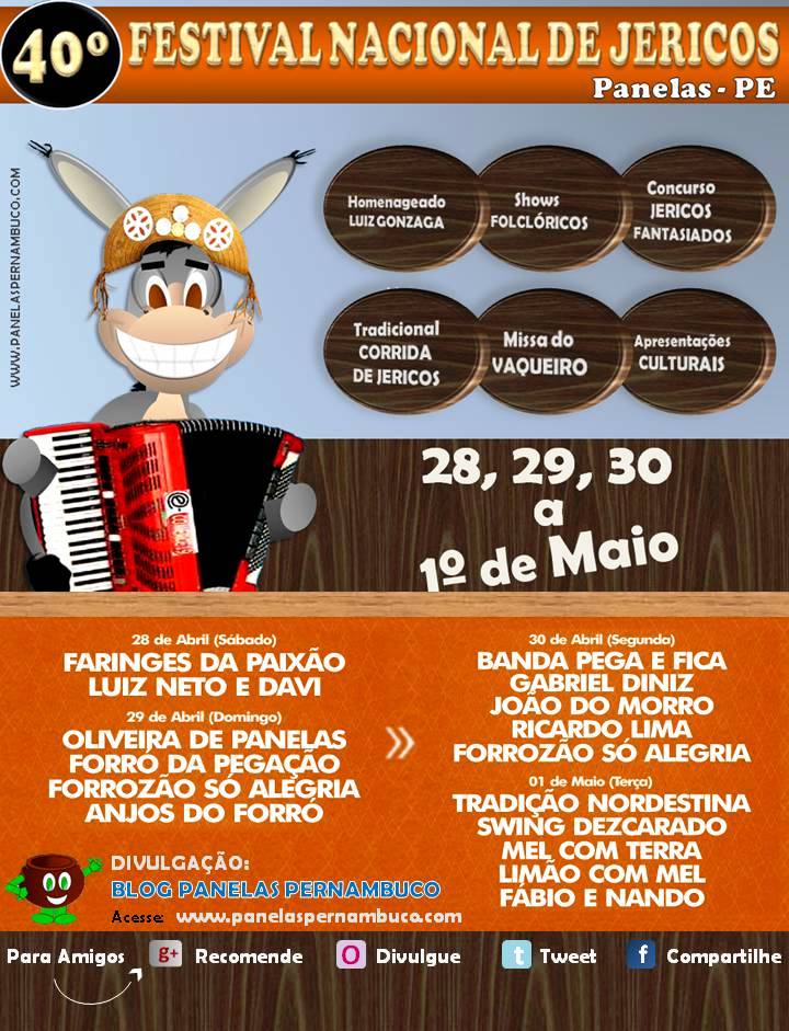Programação do Festival Nacional de Jericos em Panelas – edição 2012.