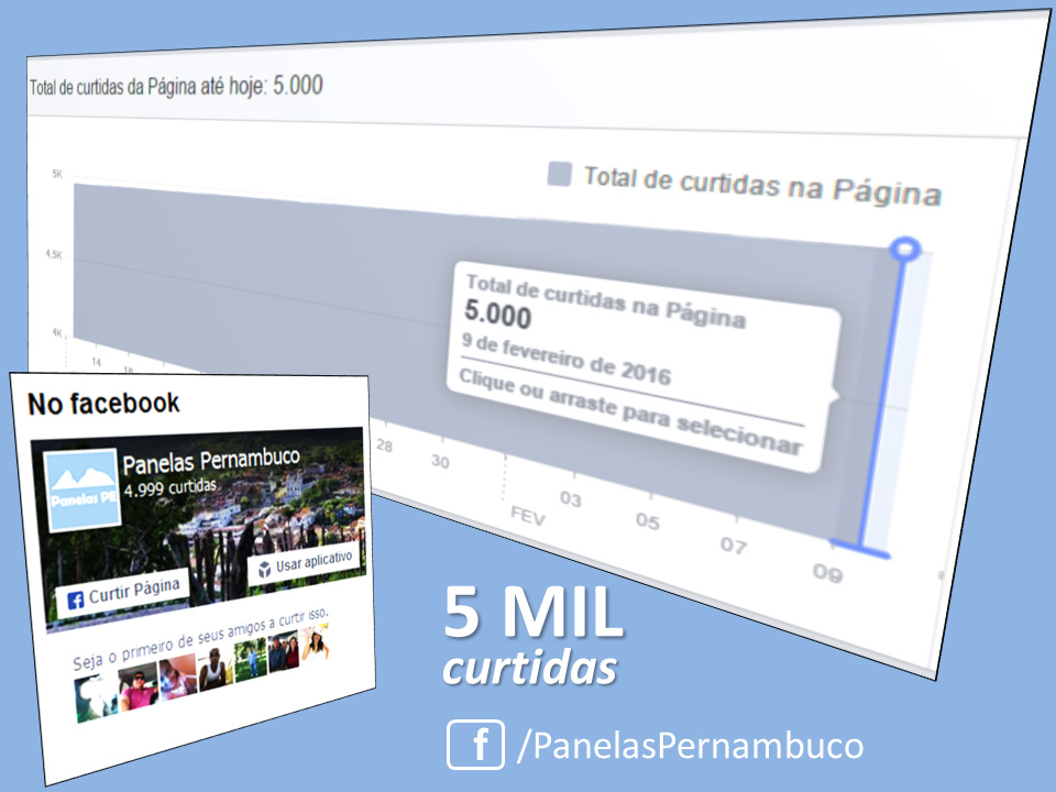 Nesta data de 09 de Fevereiro de 2016, a página no facebook (facebook.com/PanelasPernambuco) atingiu uma marca de 4.999, uma das metas desde a sua criação era completar as 5 mil curtidas (fãs, seguidores). Levando em consideração o número de habitantes do município e o de curtidas até então 5.000, é como se mais de 19% da população estivessem acompanhando através da rede social facebook as postagens e publicações. Sabe-se que entre o número de curtidas existem pessoas que não são de Panelas-PE, mas em algum momento teve afinidade ou interesse no conteúdo publicado. Essa analise serve apenas para ter uma ideia da repercussão que as postagens na página podem alcançar na rede.