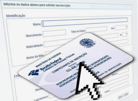Desde agosto de 2012 que a Receita Federal do Brasil (RFB) implementou o serviço gratuito de inscrição no Cadastro de Pessoas Físicas (CPF) pela internet. O serviço fica disponibilizado no endereço receita.fazenda.gov.br no link “Inscrição CPF Internet“, 24 horas por dia, 7 dias por semana, inclusive nos feriados. Você não precisa ir até uma agência dos correios (que cobra taxa pelo serviço) ou banco para se cadastrar e tirar o seu CPF, basta ter um computador e acesso a Internet que poderá fazer isso por conta própria.