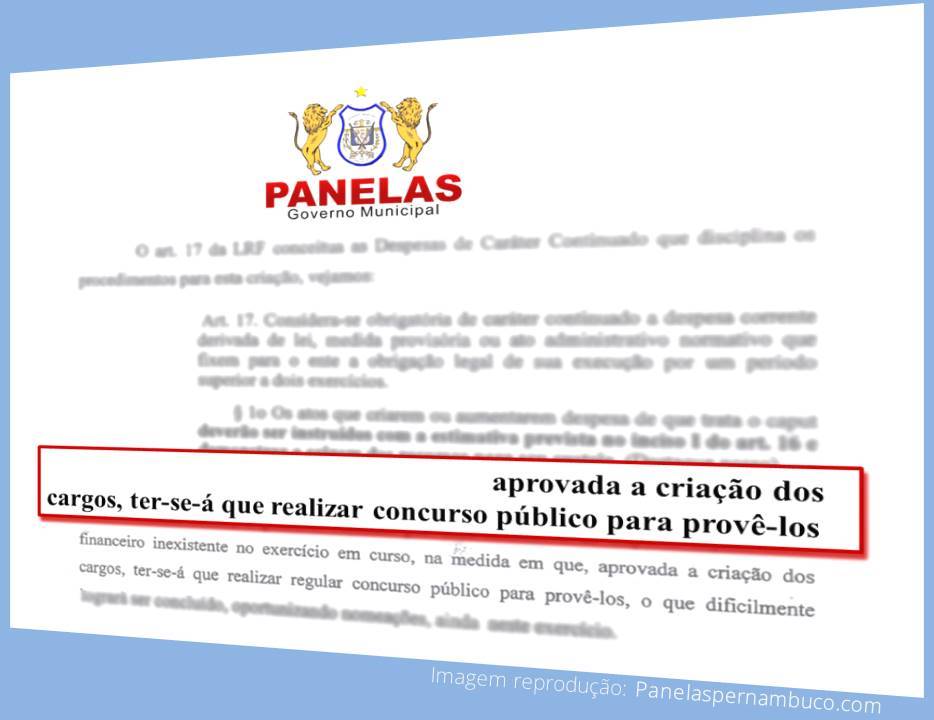 CONCURSO: confira os cargos efetivos da Prefeitura de Panelas que está no Projeto para votação na Câmara de Vereadores