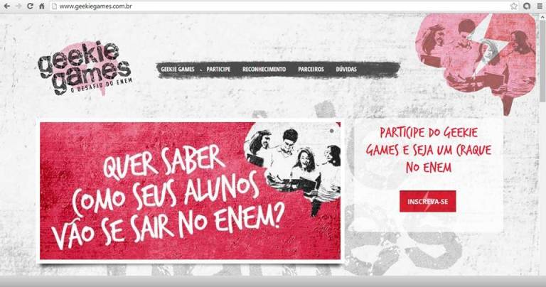 Essa é a proposta do site “Geekie Games – O desafio do Enem“, uma plataforma na Internet que vai testar os conhecimentos dos estudantes para as provas do Exame Nacional do Ensino Médio (ENEM). As inscrições estarão abertas a partir do sábado (31/08). A participação é gratuita.