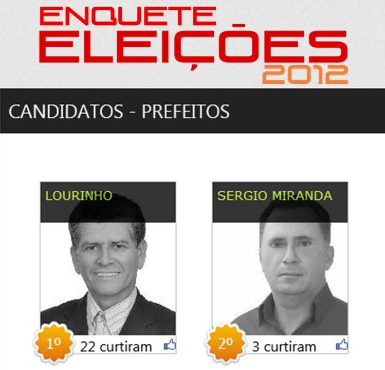 Com o Enquete Eleições 2012 os usuários podem recomendar candidatos a Vereador e a Prefeito da Eleição de 2012 através da ação curtir disponibilizada pelo site Facebook.com, portanto é necessário ter uma conta na rede social para “curtir“.