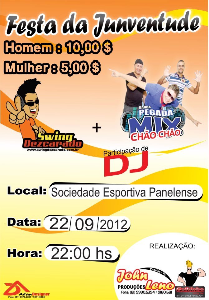 No dia 22 de setembro, Festa da Juventude em Panelas. John Leno Produções trás para você: Swing Dezcarado e a Banda Pegada MIX (de João Pessoa/PB). Você não pode ficar de fora dessa!!!