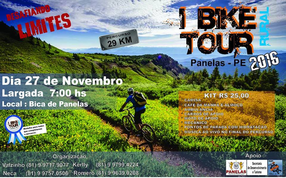Realizado neste dia 27 de Novembro o primeiro Bike Tour Rural Panelas-PE. Com a participação de dezenas de ciclistas de Panelas e região.