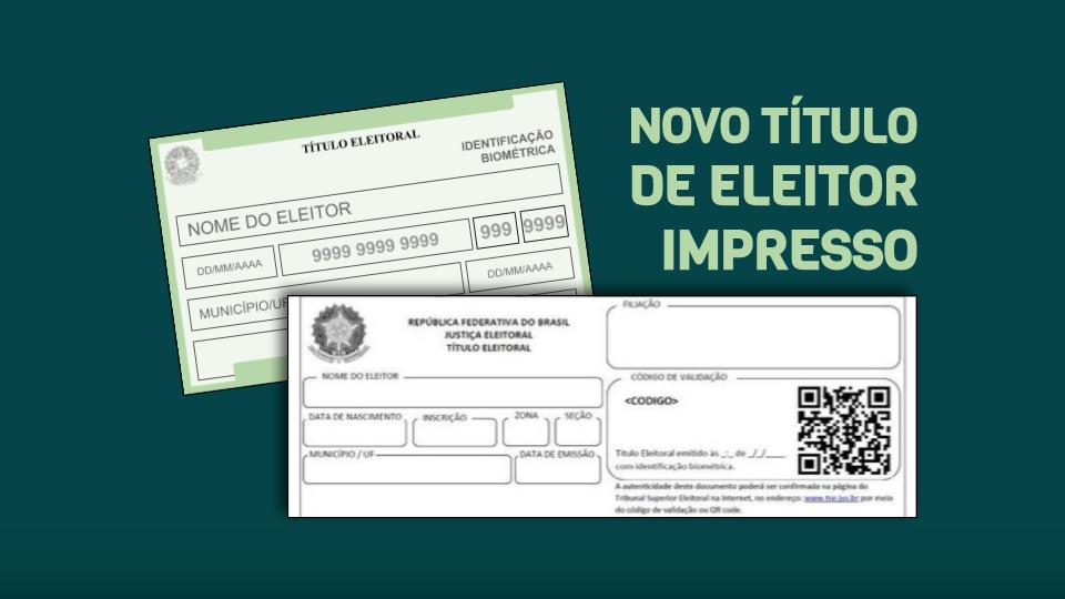 O título de eleitor continua gratuito e emitido na hora. O novo título prioriza o ambiente digital e traz os dados do eleitor, nome da Mãe e do Pai e um QR Code ou código de validação no lugar da assinatura.