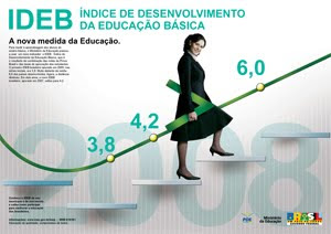 Em 2007, foi criado o Índice de Desenvolvimento da Educação Básica (Ideb ). O indicador, que mede a qualidade da educação, foi pensado para facilitar o entendimento de todos e estabelecido numa escala que vai de zero a dez. A partir deste instrumento, o Ministério da Educação traçou metas de desempenho bianuais para cada escola e cada rede até 2022. O novo indicador utilizou na primeira medição dados que foram levantados em 2005. Dois anos mais tarde, em 2007, ficou provado que unir o país em torno da educação pode trazer resultados efetivos. A média nacional do Ideb em 2005 foi 3,8 nos primeiros anos do ensino fundamental. Em 2007, essa nota subiu para 4,2, ultrapassando as projeções, que indicavam um crescimento para 3,9 nesse período. O indicador já alcançou a meta para 2009. Se o ritmo for mantido, o Brasil chegará a uma média superior a 6,0 em 2022. É o mesmo que dizer que teremos uma educação compatível com países de primeiro mundo antes do previsto.