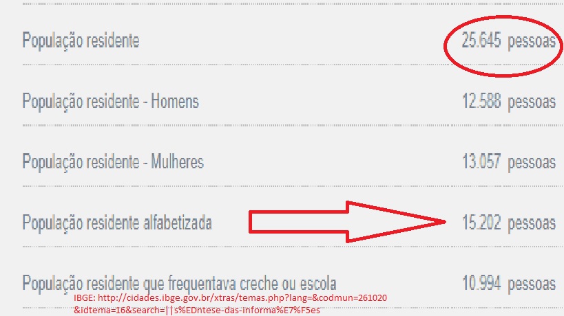 O objetivo é manter o assustador número de 10.443 pessoas não alfabetizadas no município. Os dados são do IBGE (Veja). Uma população que de acordo com os dados oficiais caiu de 30 mil para 25.645 habitantes, detêm apenas 15.202 pessoas alfabetizadas, ou seja, quase metade da população do município é analfabeta. E olhe que o ex-atual-digestor do município, Sergio Miranda (só para dar nome ao boi) vive dizendo que suas mais de duas décadas de desgoverno salvou a educação. O TCE não concorda, os auditores também não, alguns juízes pelo jeito, mas como sabem o doido sou eu (que tenho o mesmo posicionamento que todos os técnicos do Tribunal de Contas do Estado de Pernambuco).