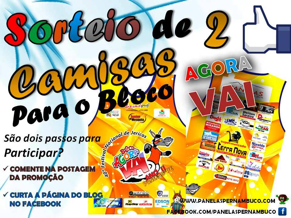 | Promoção: Sorteio de 2 camisas para o Bloco Agora VAI – ano 2. |