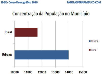 A concentração maior da população é nas áreas urbanas do município: A cidade e as vilas. 13.966 residem na zona urbana, conrespondendo a um percentual de 54,44% do total da população. 11.688 moram na zona rural, formada por vários sítios e os povoados.