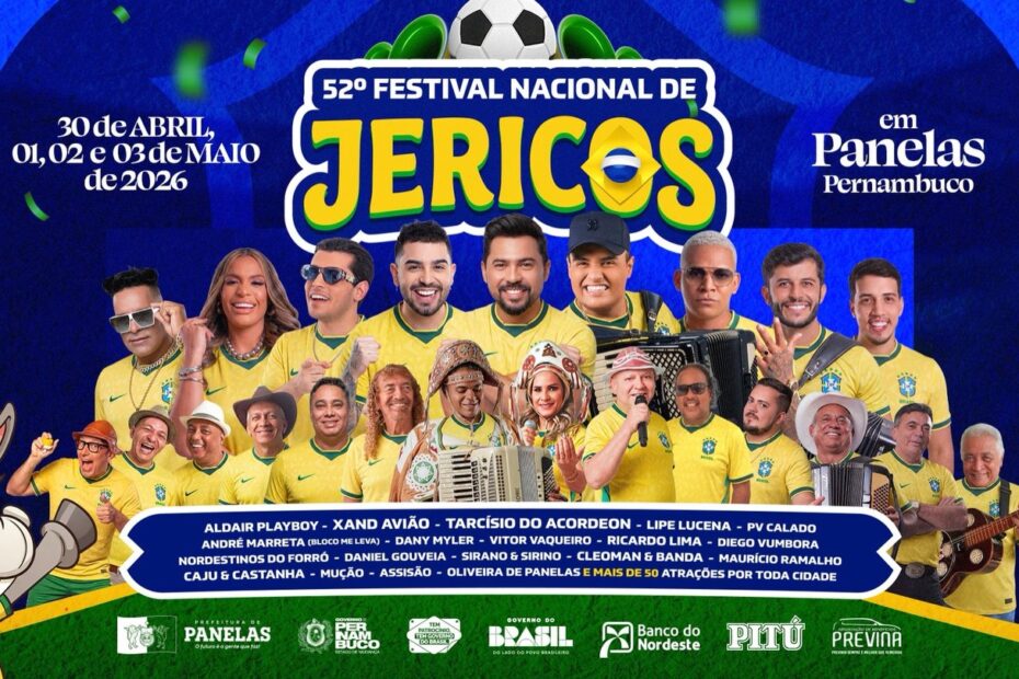Divulgada a Programação da festa mais tradicional da região. O Festival Nacional de Jericos de Panelas-PE será realizado entre os dias 30 de abril e… Ler mais »52º Festival Nacional de Jericos